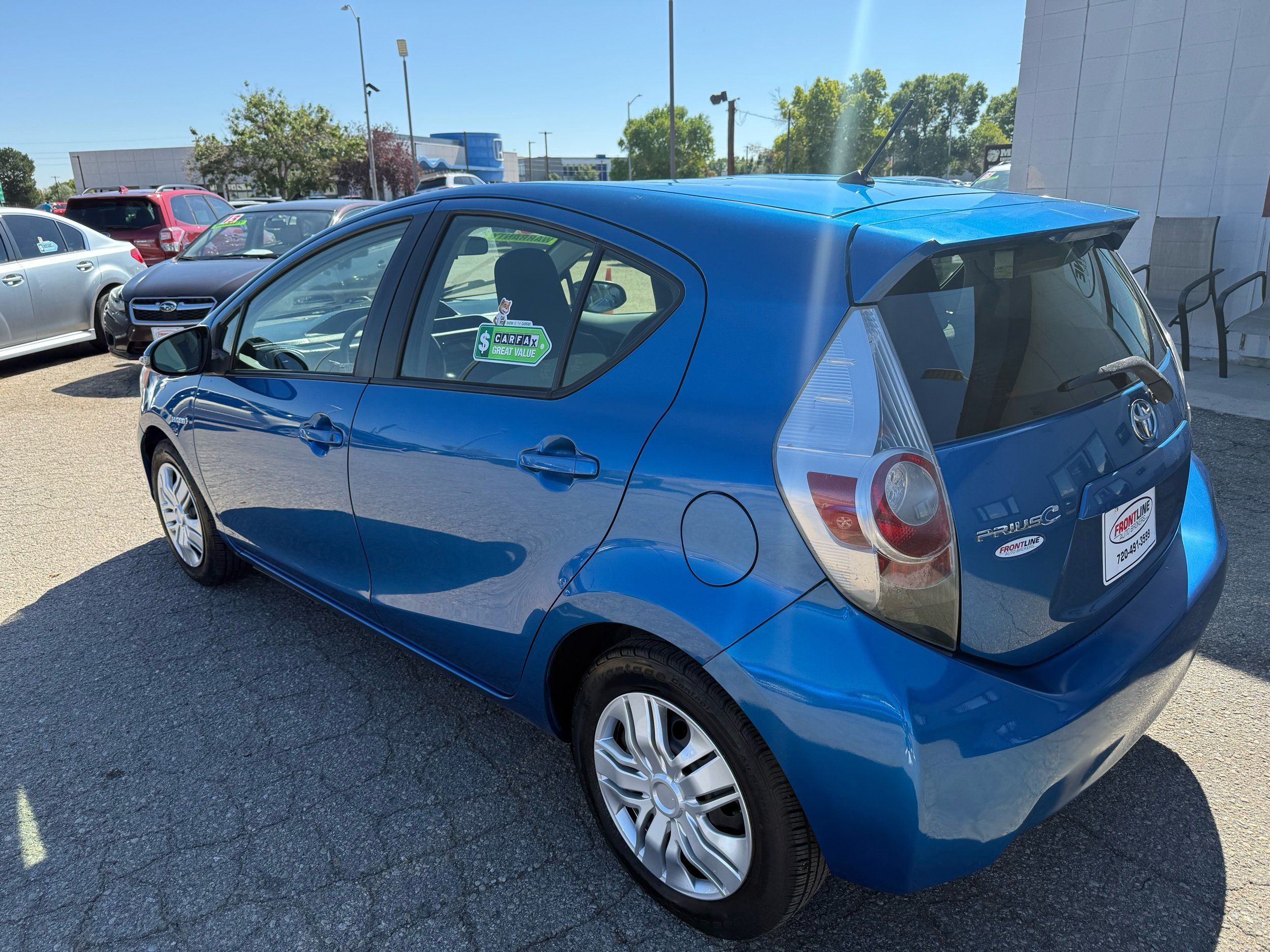 Experience the perfect blend of efficiency and style with this 2013 Toyota Prius c One. This Hatchback is finished in a striking Blue Streak Metallic exterior that beautifully complements its sleek design, while the comfortable Gray interior offers a serene driving environment. With only one previous owner according to the CARFAX report, you can be assured of its well-maintained history. The vehicle has traveled just 107,999 miles and is powered by an efficient Electric 1.5L I4 engine delivering 73hp and 82ft-lbs of torque—ideal for those seeking eco-friendly performance without compromising on power. Equipped with modern conveniences like Bluetooth connectivity, this hybrid ensures you stay connected safely on every journey. Whether you're navigating city streets or embarking on long road trips, the Prius c's impressive fuel economy will keep your adventures cost-effective and environmentally conscious. Don't miss out on owning this reliable hatchback that's ready to deliver exceptional value for years to come! Visit us today to take it for a test drive and discover why it's the smart choice for savvy drivers looking to make an impact both at the pump and on the planet.