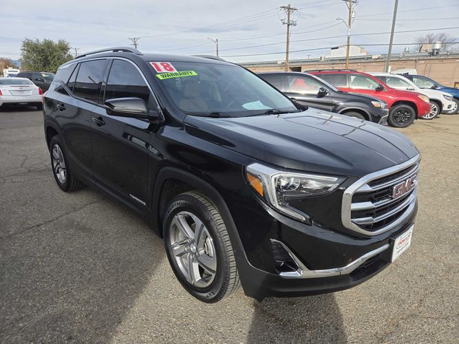 Elevate your driving experience with the 2018 GMC Terrain SLT Diesel, a remarkable blend of style, efficiency, and capability. Cloaked in an elegant Ebony Twilight Metallic exterior, this SUV commands attention on every road it graces. With its clean CARFAX report ensuring peace of mind and no history of accidents, you can trust that this vehicle has been well-maintained and is ready to accompany you on countless adventures. Under the hood lies a robust yet efficient 4-cylinder diesel engine delivering 137 horsepower and an impressive 240 lb-ft of torque. Paired with a smooth-shifting 6-speed automatic transmission and all-wheel drive (AWD), the Terrain SLT offers exceptional handling in various driving conditions while maximizing fuel economy—perfect for both city commutes and long highway journeys. Step inside to discover a world where comfort meets sophistication. The interior is adorned with premium leather seating that promises luxury at every touchpoint. Whether you're embarking on daily errands or weekend getaways, you'll appreciate features like remote start which ensures your vehicle is always at the perfect temperature before you even step inside. This thoughtful addition complements the convenience-focused design ethos that GMC vehicles are renowned for. Now's your chance to own a versatile SUV that's as dependable as it is stylish! Don't miss out on experiencing everything this exceptional vehicle has to offer—from its striking appearance to its advanced engineering prowess. Visit our dealership today for a test drive and see firsthand why the 2018 GMC Terrain SLT Diesel stands out from the crowd! Embrace reliability without compromising elegance; make it yours now!